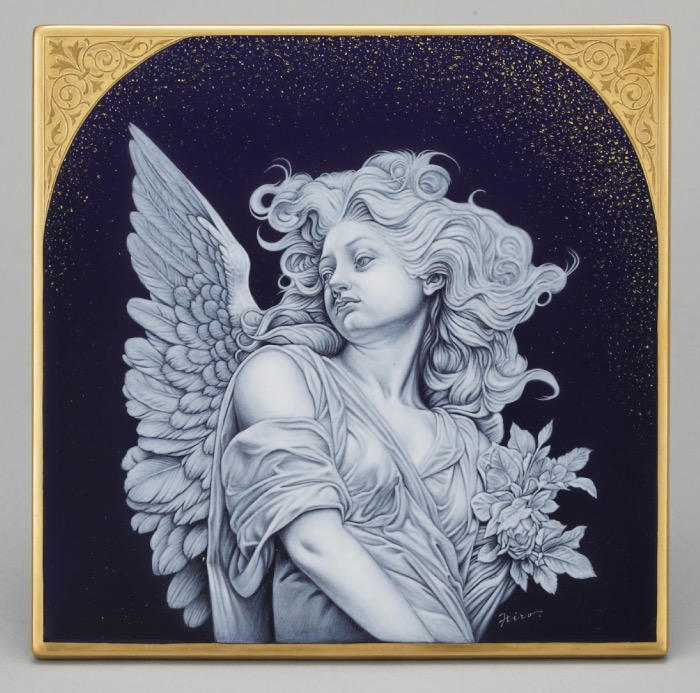 瑠璃釉上白盛陶板画「静寂の中」180mm×180mm