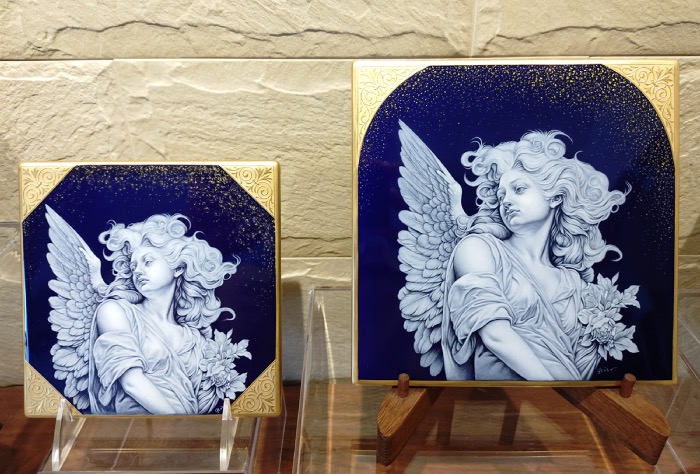 瑠璃釉上白盛陶板画「静寂の中」シリーズ ("In silence" series ) Porcelain Art with White Raised Enamel